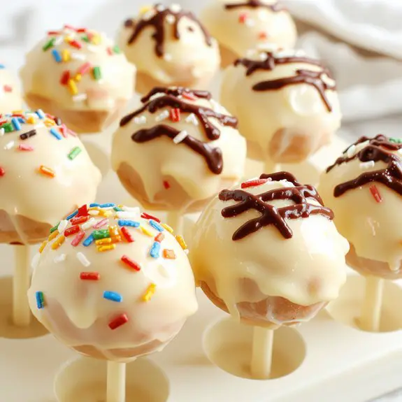 – Dip and Decorate: Insert lollipop sticks into the chilled cake balls and dip each one into the melted coating, tapping off excess. Decorate with sprinkles or drizzle with contrasting chocolate before the coating sets.