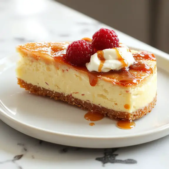 Don’t overmix the batter; it can trap air and cause cracks. Bake in a water bath to guarantee even cooking and a creamy texture.
