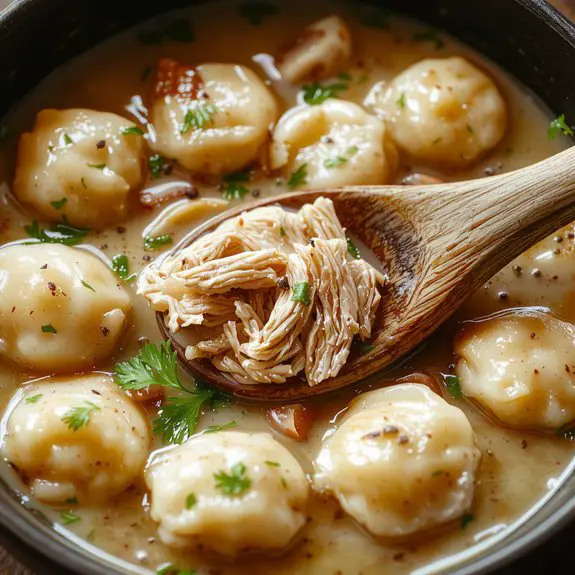 What makes it stand out? Tender, juicy chicken simmered in a rich, savory broth, paired with fluffy, pillowy dumplings that melt in your mouth.