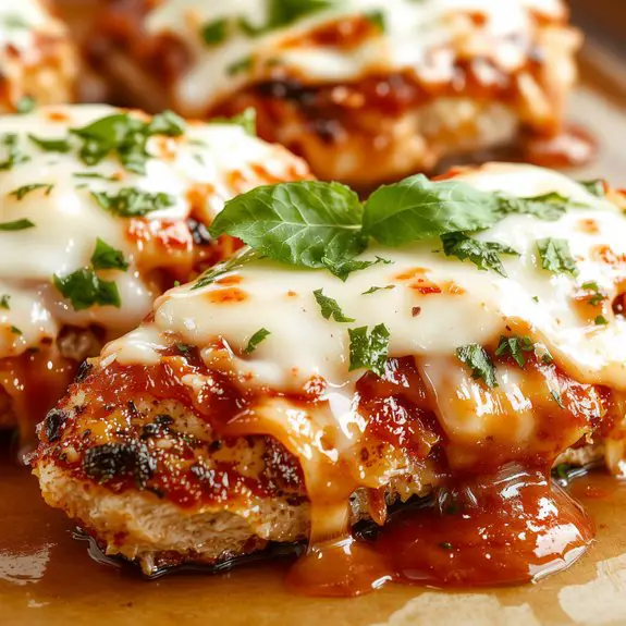 Broil for bubbly cheese: Place the chicken under the broiler for 1–2 minutes until the cheese melts and browns slightly.