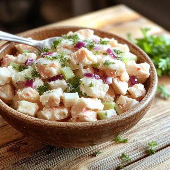 I’d say chicken salad lasts 3-4 days in the fridge if stored airtight. I always make sure it’s chilled promptly and kept below 40°F to stay safe—after that, I toss it to avoid risks.
