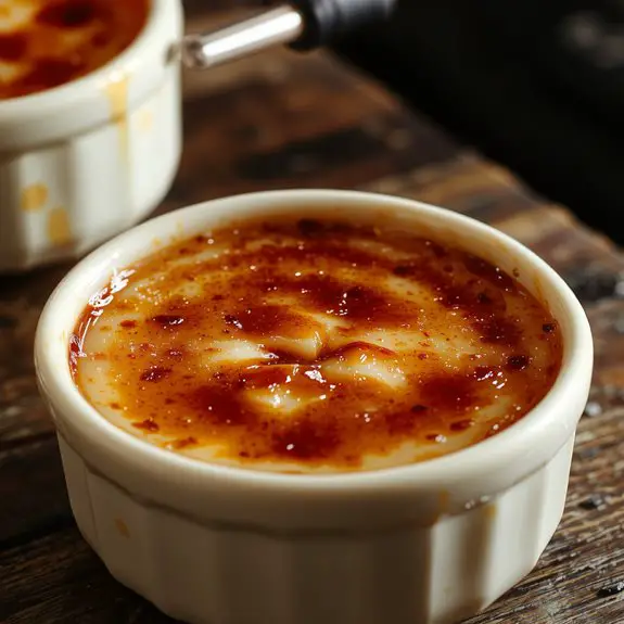 Although crème brûlée seems fancy, it’s surprisingly simple to master if you follow a few key tips. First, strain your custard mixture to remove air bubbles and guarantee a silky texture. Use a water bath to bake evenly and prevent cracking.