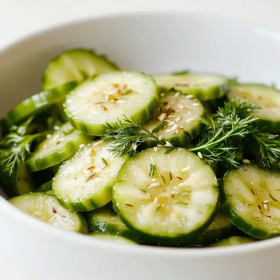 Visual Cue: The cucumbers should be crisp, lightly coated in dressing, and flecked with herbs.