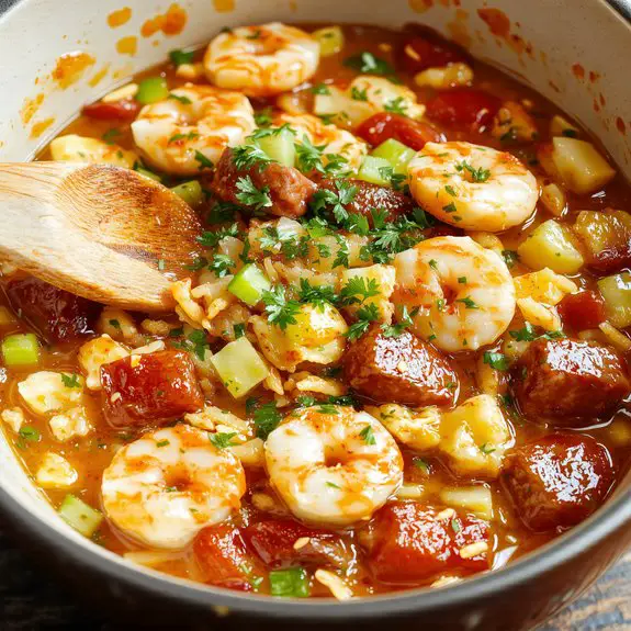 Pro Tip: If you’re short on time, use pre-cooked sausage and shrimp to cut down on prep.