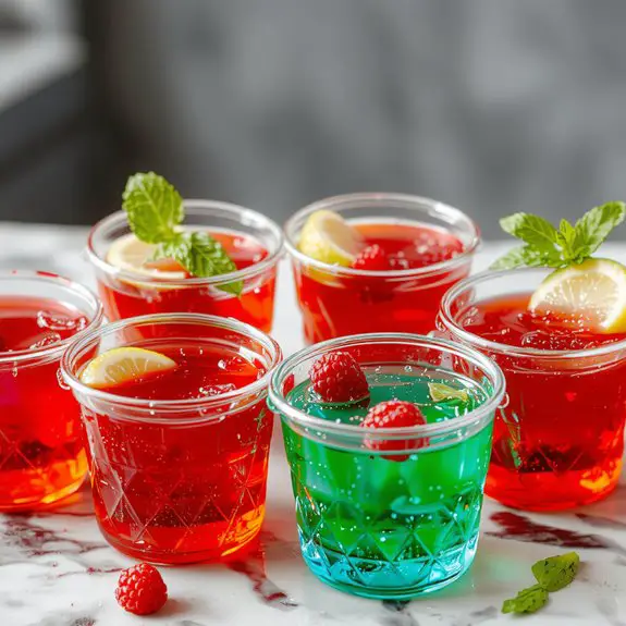 Yes, I’d refrigerate jello shots; they need it to set properly and stay safe to eat. Leaving them out risks spoilage or melting, especially in warm environments. I always keep them chilled until I serve them.