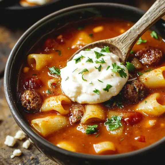 Imagine tender noodles swimming in a rich, tomatoey broth, layered with gooey melted cheese, savory Italian sausage, and aromatic herbs that’ll make your kitchen smell like Nonna’s house.
