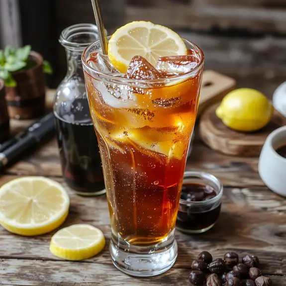 • Top with a splash of cola for color and a hint of sweetness. Pour slowly to create a layered effect and a classic iced tea appearance.