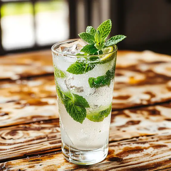 I’ll gently press the mint leaves to release flavor, avoiding over-muddling since it makes them bitter. I’ll also use fresh mint and remove it after muddling to prevent prolonged contact with the drink.