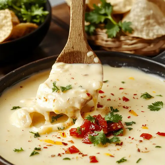 Imagine velvety smooth cheese with a subtle kick, flecked with fresh jalapeños or smoky poblano if you’re feeling fancy—this is the kind of queso that makes people hover around the bowl, shamelessly going back for “just one more” scoop.