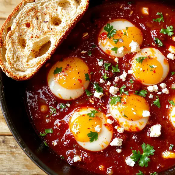 When making shakshuka, I’ve found that using fresh, ripe tomatoes makes a world of difference in flavor. Don’t overcook the eggs—they should be just set with runny yolks.